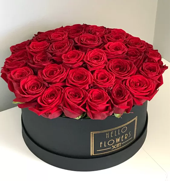 Czerwone róże w czarnym mega boxie – kwiaty w pudełku flower box
